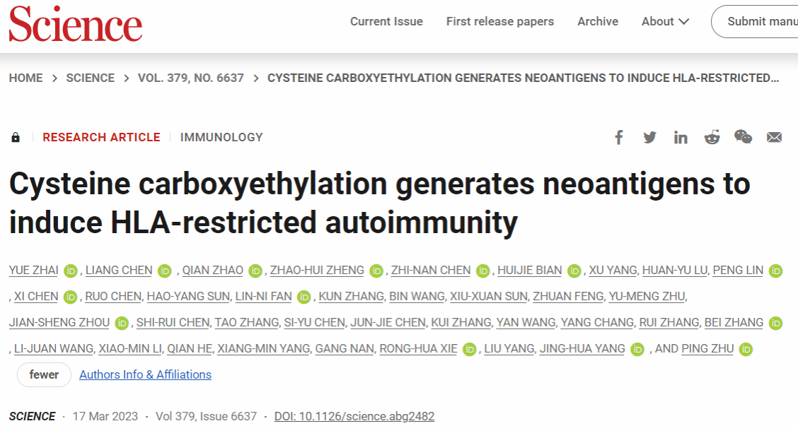 同期,Science杂志还发表了一篇专门评述文章:Autoimmunity to the modified self。该评论特别指出,大量研究已经发现翻译后修饰在炎症和代谢过程中被广泛监测到,自身蛋白PTM是自身免疫的重要来源。随着技术的不断进步和研究的深入,有望发现更多的诱导自身免疫反应的PTM。
