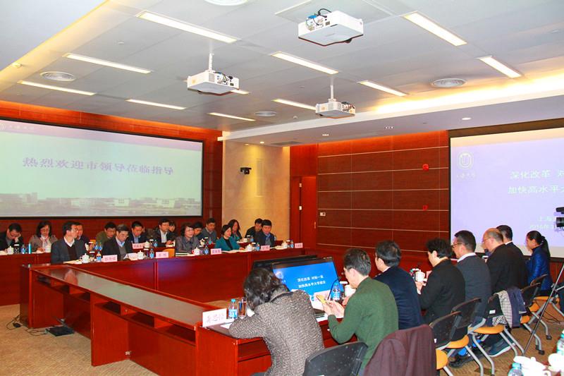 副校长吴明红代表学校作了题为《深化改革,对标一流,加快高水平大学建设》的汇报,校党委书记罗宏杰就党建引领与文化软环境建设作了补充。宗明副秘书长、苏明主任、丁晓东副主任、郭为禄副主任等领导分别就如何处理好存量与增量之间的关系、如何以标杆学校为引领、如何提高人才培养质量、如何统筹规划校区建设、如何发挥高层次人才作用等提出了宝贵的意见和建议。