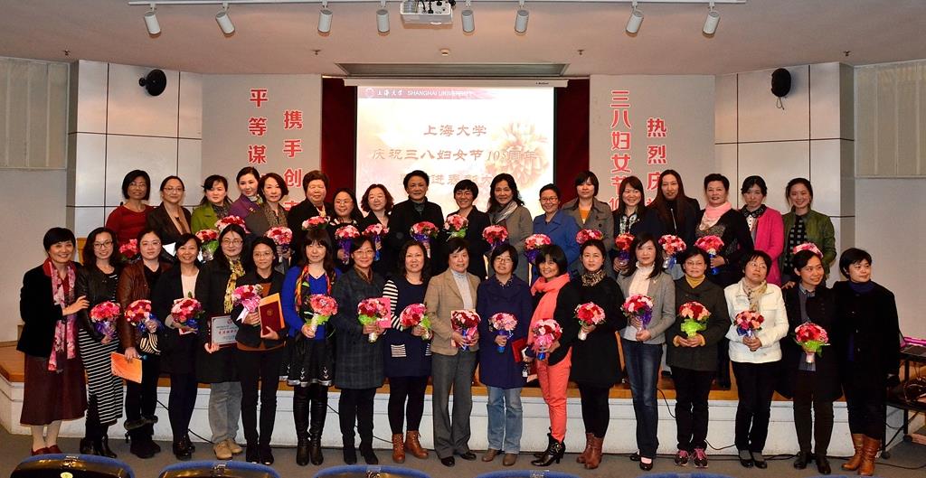 大会特别采访了“全国巾帼建功标兵”获得者机电工程与自动化学院谢少荣教授和上海市“三八红旗集体”获奖集体期刊社社长秦钠。谢少荣教授对现场的青年女教师谈了自身的成长经历、如何融入科研团队感想体会,并和大家分享了她如何处理好工作与家庭的关系;秦钠社长就期刊社如何带领以女性为主的集体攻坚克难,取得56个省部级以上奖项的辉煌成绩和获得行业中最高荣誉为学校争光添彩,并同时做好团队人文关怀等问题介绍了经验。一个个荣誉背后是获奖者们多年来辛勤奋斗的积累,她们却用最真诚质朴的语言淡然道来,令人感动也让人敬佩,赢得了会场阵阵掌声。机电工程与自动化学院的青年女教师们为大会专门编排了优美的舞蹈《茉莉花》,简短而热烈的表彰大会在音乐学院张旻杰同学的歌曲《永远跟党走》中圆满结束。