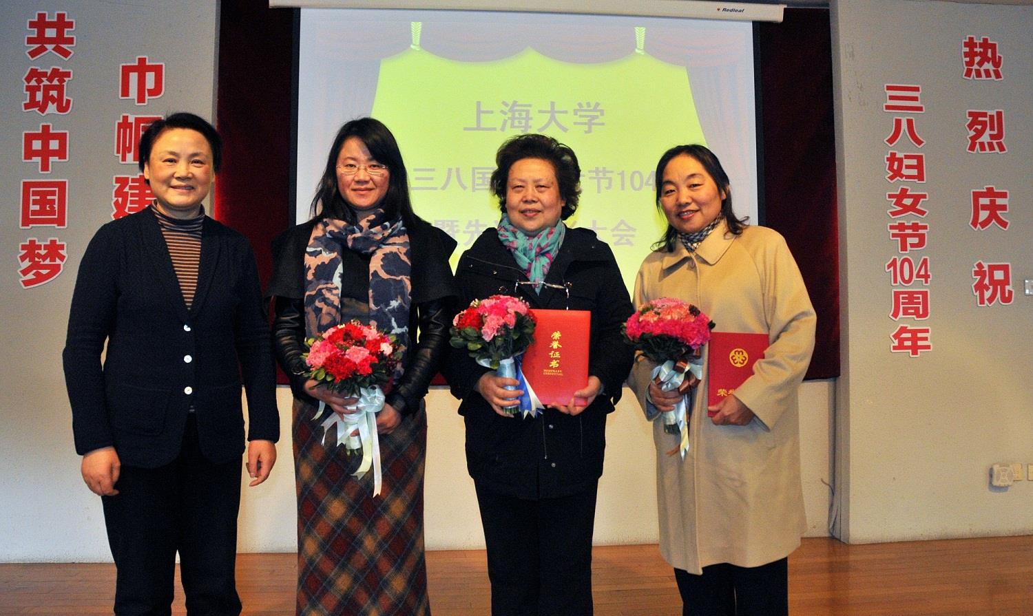 表彰会上材料学院教授任慕苏、期刊社社长秦纳、直属单位党委书记陆翠兰和山鸣峰夫妇作为获奖代表先后发言。一个个荣誉背后是他们多年来辛勤奋斗的积累,他们却用最真诚质朴的语言淡然道来,令人感动也让人敬佩,赢得了会场阵阵掌声。最后,模范佳侣代表付慧君和董有德夫妇表演了经典黄梅戏选段《夫妻双双把家还》,在一片欢乐祥和的气氛中表彰会圆满结束。在这个专属于女性自己的节日里,参加大会的女同胞们都尽情地享受着节日的快乐。
