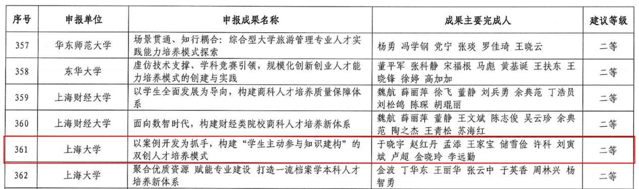 管理学院于晓宇教授团队获上海市高等教育优秀教学成果项目二等奖
