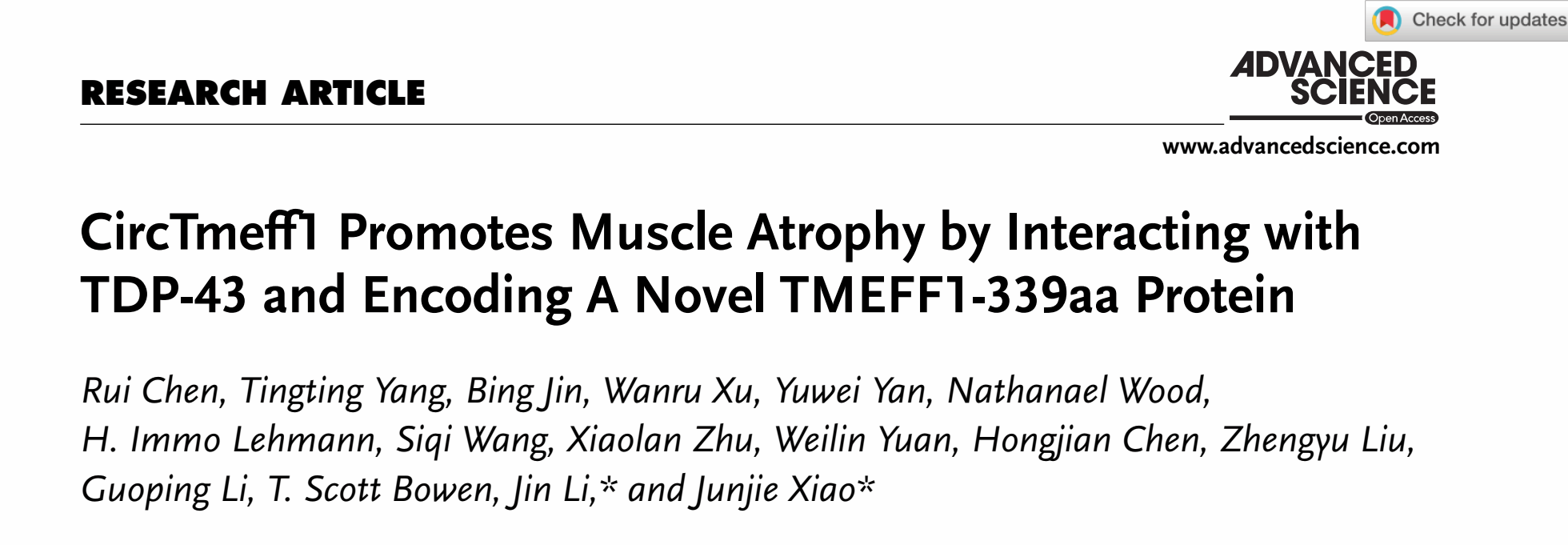 生命科学学院心血管研究所青年教师李进副教授在Advanced Science杂志发表研究论文