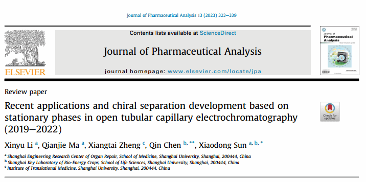 “Recent applications and chiral separation developments based on stationary phases in open tubular capillary electrochromatography (2019–2022)”一文系统总结了近四年在开管毛细管电色谱(OpenTubularCapillaryElectrochromatography,OT-CEC)中出现的新型手性分离材料,并将其系统归类为:离子液体、纳米颗粒、多孔材料、生物材料、非纳米聚合物和其他等六种类型,详细讨论了OT-CEC在代谢组学、非手性药物分离、临床,食品化妆品以及环境生物各领域中发挥的作用,深入介绍了OT-CEC与其他仪器的联用,包括毛细管电泳与质谱、紫外检测器或电化学检测系统等的联用方法等,梳理总结了基于新型材料的OT-CEC手性固定相未来的发展方向和趋势。该综述可能为手性对映体分离方法的开发提供新的思路,为进一步丰富和发展手性科学提供有力支撑。