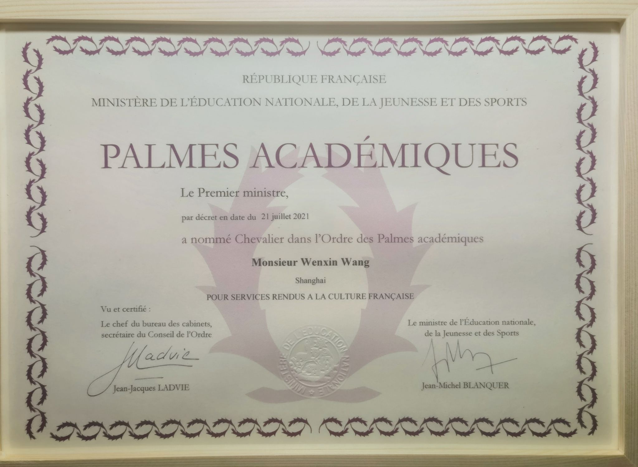 北京外国语大学法语学院院长戴冬梅教授同时获授法国学术棕榈骑士勋章。
