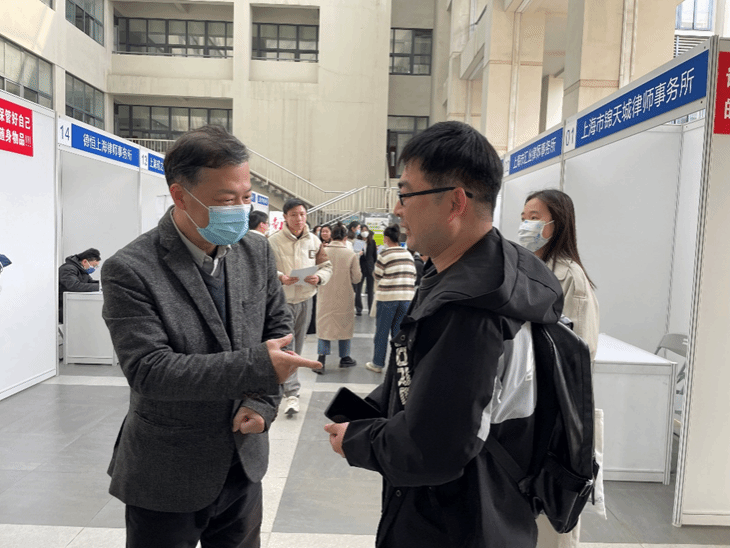 本次招聘会共有上海市锦天城律师事务所、上海市汇业律师事务所、北京金诚同达上海律师事务所、上海澜亭(杭州)律师事务所、上海艾克森律师事务所、光明母港(上海)种业科技有限公司、上海董道律师事务所、北京盈科(上海)律师事务所、上海埃孚欧律师事务所、上海弼兴律师事务所、上海邦信阳中建中汇律师事务所、上海风语筑文化科技股份有限公司、上海瑾之润申达律师事务所、德恒上海律师事务所、上海国仕律师事务所、上海彩之虹律师事务所、上海市申房律师事务所、上海远业律师事务所、渤海银行上海自贸试验区分行、上海君澜律师事务所等二十家知名律所和企业应邀参加,各单位针对法学院的专业特色和学生就业需求,提供了律师助理、市场助理、法务、商标版权代理人、商标版权秘书、见习生等百余个工作岗位,还有二十余个面向其他年级学生的实习岗位。招聘会吸引了近200名同学参加,同学们积极投寄简历,抓住宝贵就业机会,向面试官充分展现自己的优势和胜任力。