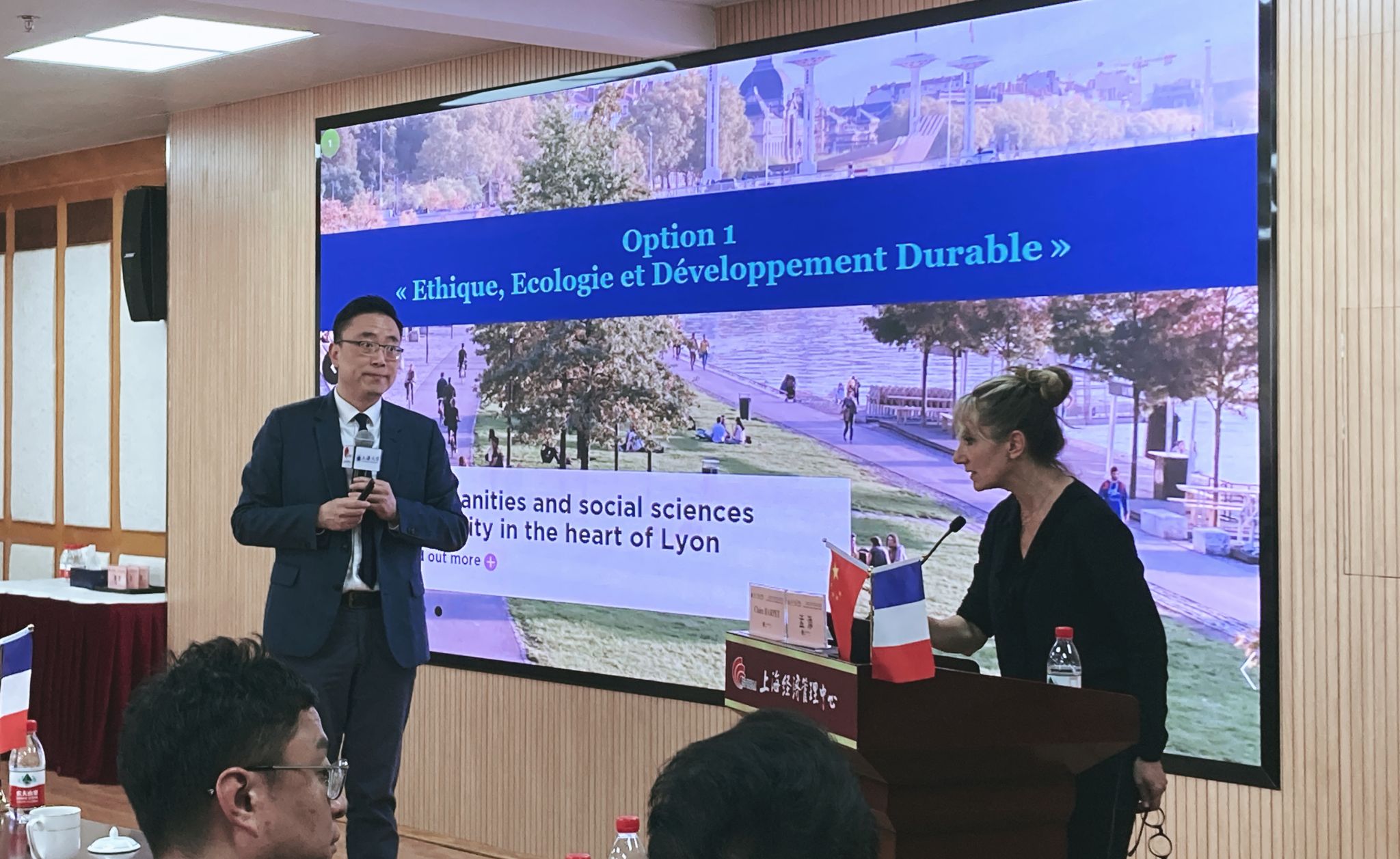 里昂三大可持续发展中法硕士项目联合主任Claire HARPET向同学们介绍了可持续发展学科在法国的理念萌芽和发展沿革,回顾了中法项目的落地和近年来办学过程中呈现的机遇与挑战。她指出,可持续发展的理论研究要和社会发展的实际问题相结合,因此项目课程在不断调整和优化,她希望同学们勇于探索和思考该领域的未来方向,推动实现人类、自然、环境和社会的全面和谐及可持续发展。