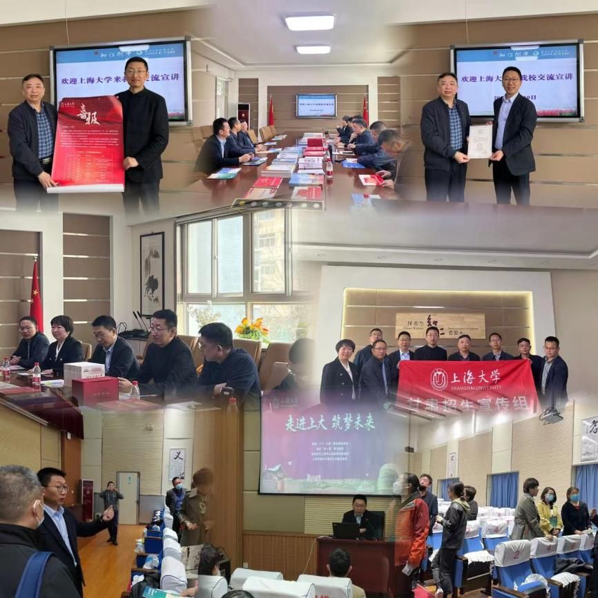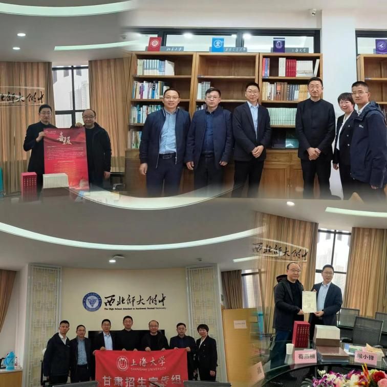 上午,甘肃招宣组中线分队由校党委常委、总会计师苟燕楠带队一行8人前往兰州市第三十三中学进行交流,赠送书籍和生源基地高中学子在上大获奖学金喜报。兰州市第三十三中学骈旭校长对我校一行表示热烈欢迎,介绍了学校发展历程、办学特色和生源情况,对我校授予“优质生源基地”表示感谢。苟燕楠教授对兰州市第三十三中输送大量生源给予高度评价,详细介绍我校人才培养情况,并期待拓展合作,培养更多共同的杰出校友。