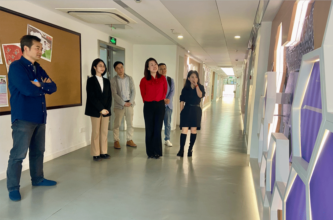 座谈会前,上海教育报刊总社领导、老师一行参观了上海智能媒体传播创新实验中心,详细了解了学院在人才培养、学科建设等领域所取得成果。