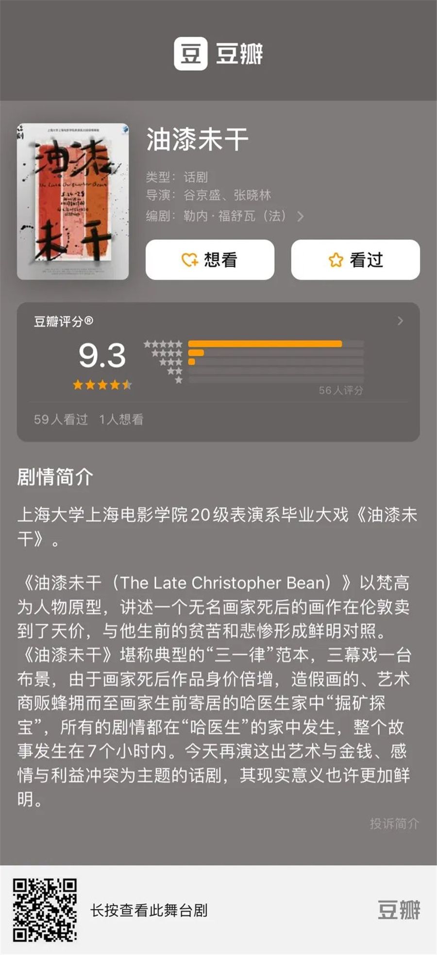 上海电影学院20级表演班毕业大戏《油漆未干》在黑匣子剧场连续上演了5天6场,为近千名观众奉献了完美的演出,收获了无数好评。本次演出不仅在现场获得了良好的反响,而且在各大社交媒体上也引起了广泛讨论。感谢各位观众对20级表演班的支持!