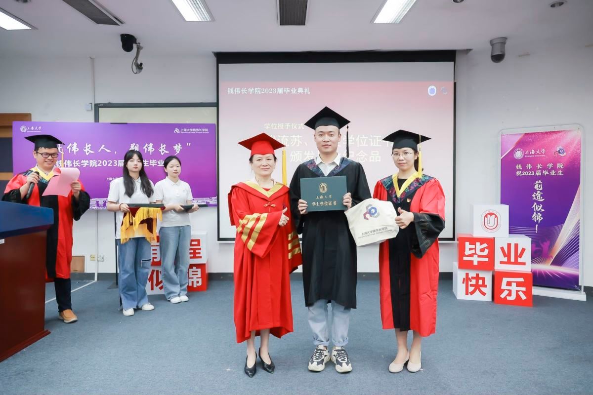 在最隆重的学位授予仪式环节,周全院长逐一宣读毕业生名单,聂清副校长为毕业生们拨穗、颁发学位证书,冯凌燕书记为毕业生们赠送毕业纪念品。全体毕业生依次从聂校长手中接过学位证书,这不仅是同学们求学道路上的一个里程碑,更是在钱伟长学院四年时光的浓缩,也意味着毕业生们即将开启崭新的人生篇章。