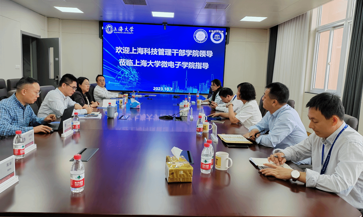 10月7日下午,上海科技管理干部学院党委书记张艳林、院长曾方一行调研微电子学院。微电子学院党委书记郭纯生,执行院长张建华,党委副书记、副院长袁铭,副院长路秀真,产业学院副院长张军参加调研会。