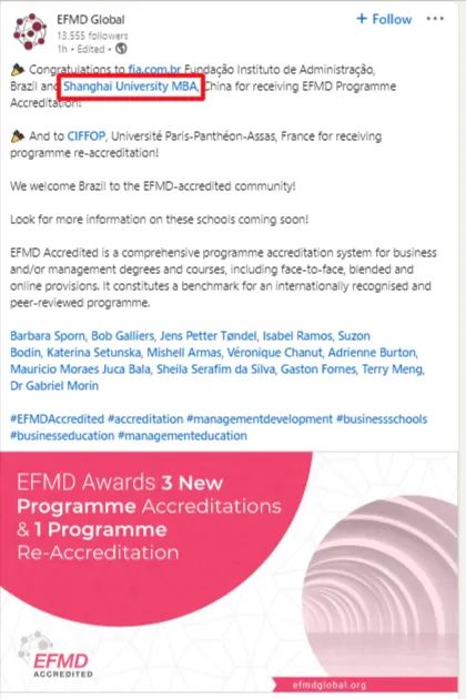 此次获得商科三大国际认证之一“EPAS”,标志着SHUMBA继2020年获得AMBA 最高5年再认证后的一次新突破;也是对SHUMBA学术质量、管理水平、学生发展和国际化特色的肯定。