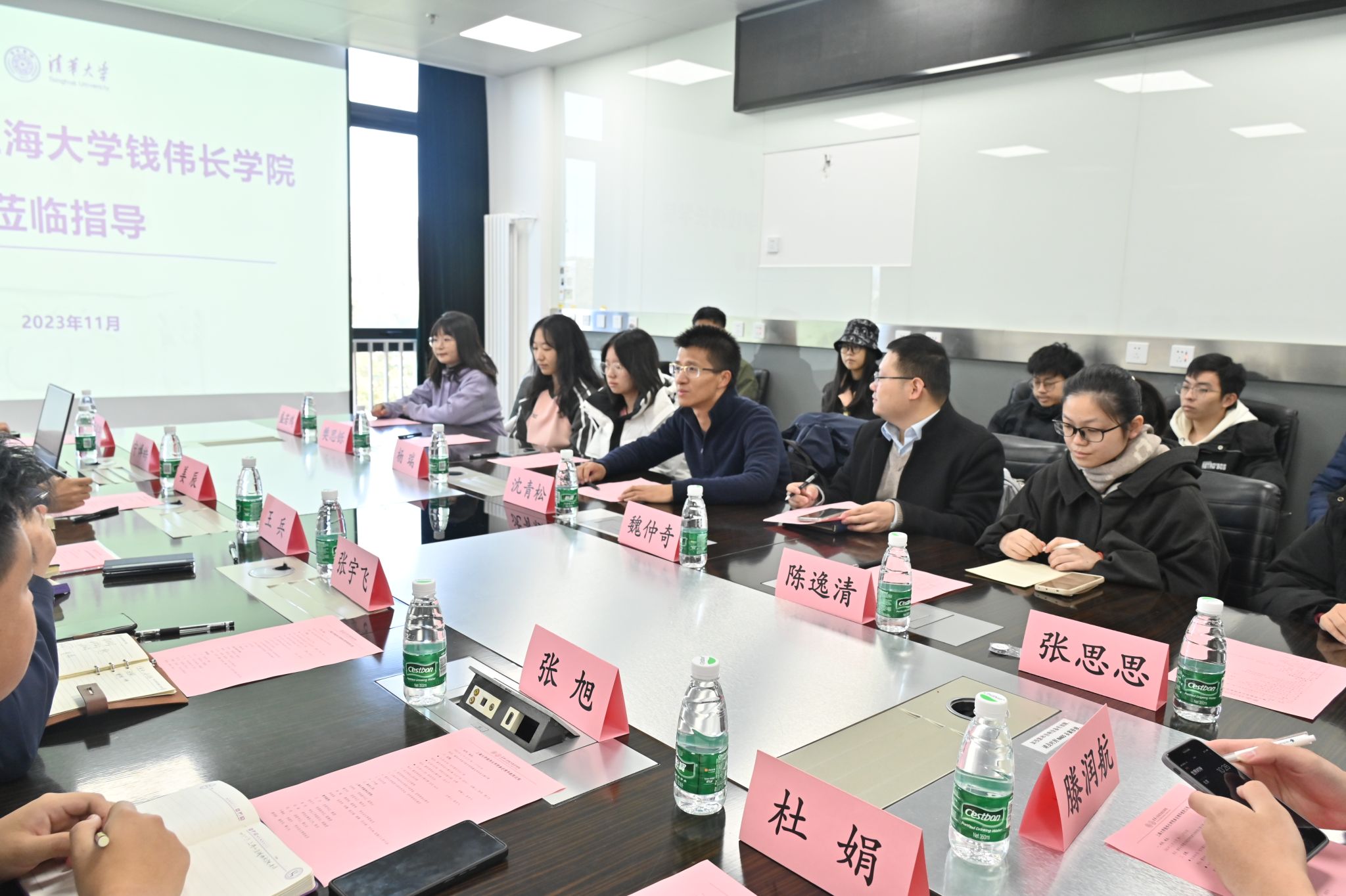 随后,双方举行专题座谈交流,王兵书记致欢迎词,对钱伟长学院一行的来访表示热烈欢迎。他回顾了钱伟长老先生在清华大学航院力学系的建设历程中的重要贡献,强调要继承钱伟长先生等老一辈的科学家精神和教育思想,重视数理基础教育、培养全面发展的学生。沈青松副书记从钱伟长学院的历史沿革、专业设置、拔尖人才培养体系、学生培养成效等方面全方位介绍了钱伟长学院、伟长书院的总体情况和思政、团学工作特色。姜辰老师就清华大学航院本科学生工作架构、学生入党流程、班团集体建设、困难学生发展帮扶、本科生就业引导与职业发展指导等方面做了详细分享,并简单介绍了航院团委、学生会、特色学生组织概况。双方还就研究生推免工作政策、拔尖人才培养方案、书院建设模式及书院队伍建设等方面展开进一步探讨和交流。