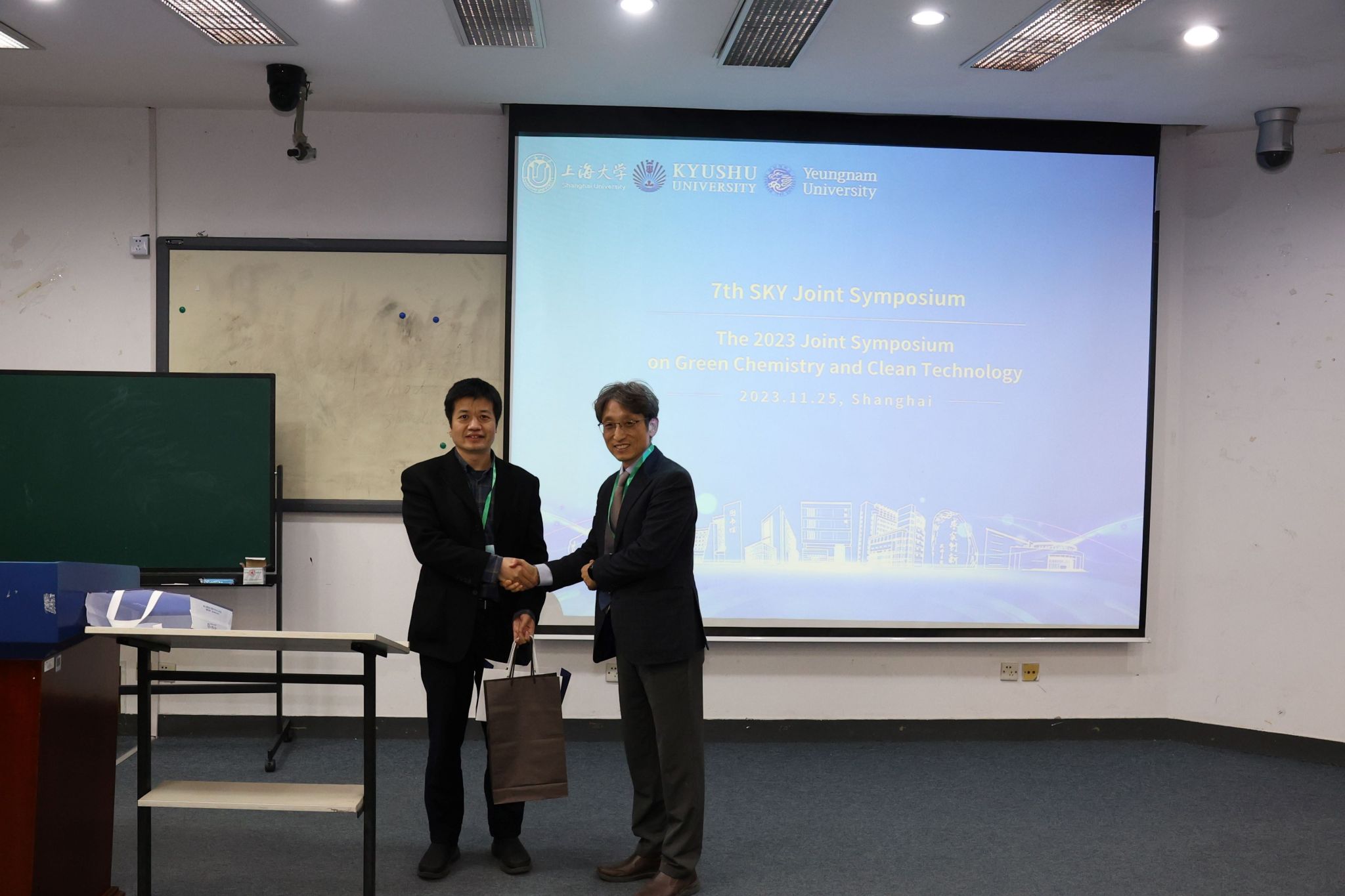 研讨会最后,下一届中日韩SKY论坛的承办方韩国岭南大学负责人Moonyong lee教授做了总结发言,他对所有参与报告的师生们的精彩演讲给予了高度肯定,并对明年论坛成果再上新台阶表示期待。Hiroyuki IJIMA教授、Moonyong lee教授与王勇教授互相交换礼物,共同表达对研讨会持续举办并越办越好的美好祝愿。