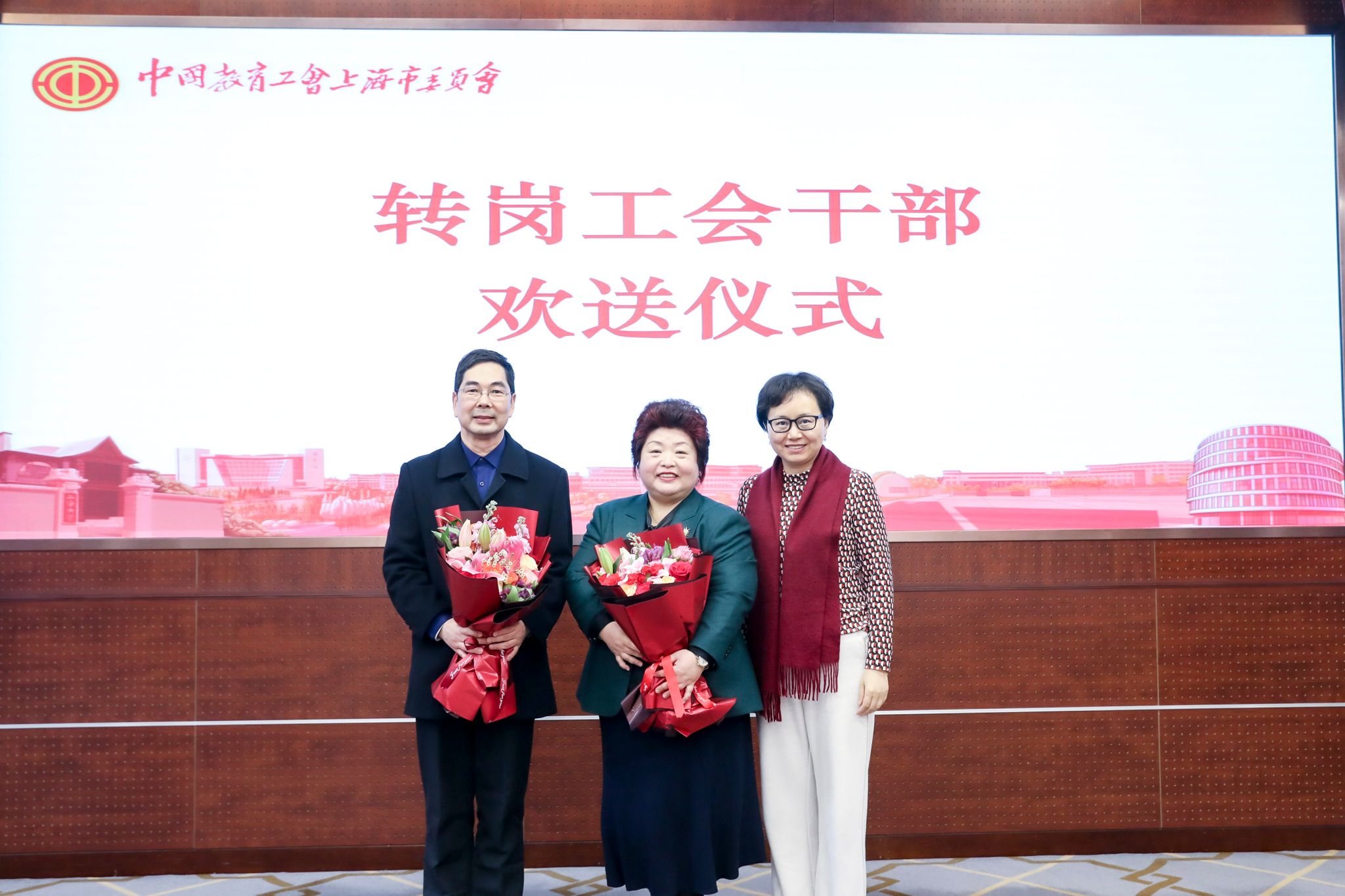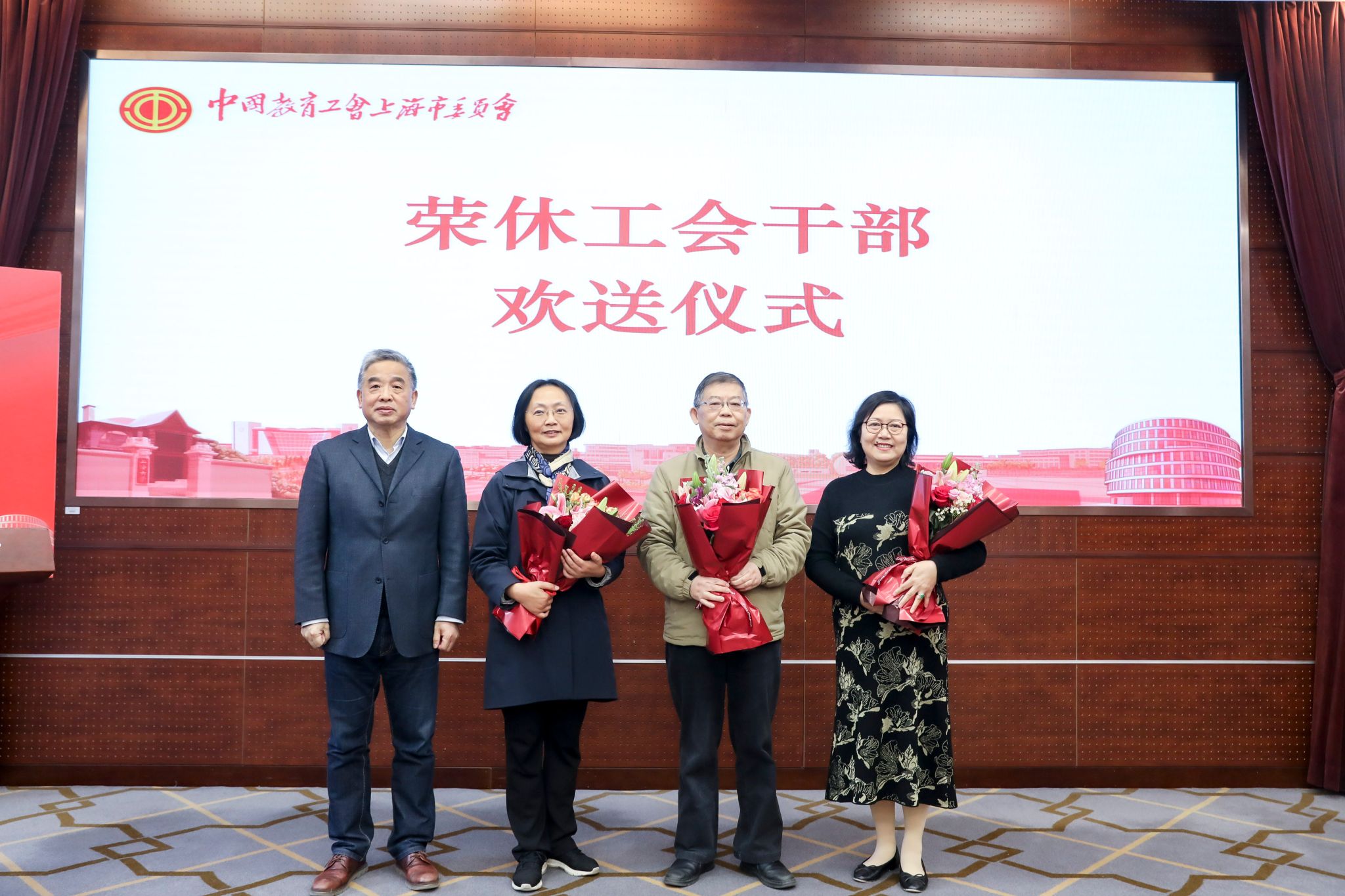 2023年,东北片高校共有10位工会常务副主席荣休或转岗,为表达感谢,在交流会上举行了工会干部欢送仪式。张艳萍、陶文捷为5位离任工会常务副主席代表献花。