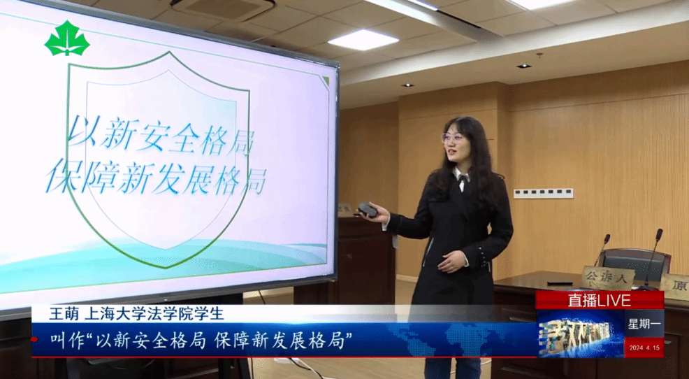 活动现场,法学院学生、中夏党支部书记王萌向同学们深入阐述了新时代国家安全的特点、现状以及对国家发展的重大意义,强调布局新安全格局应当贯彻“十个坚持”的工作方针。王萌就如何更好、更有效开创国家安全工作新局面向与会师生阐释了以“健全国安体系”“增强维护能力”“提高治理水平”“完善社会体系”为核心的“四维度”措施。她指出,国家安全与人民群众息息相关,尤其是在当下国际形势错综复杂、不断变化的背景下,国家安全不断面临着新问题、新挑战,青年大学生作为新时代的主力军,更应当担负起共建国家新安全格局的责任和使命。