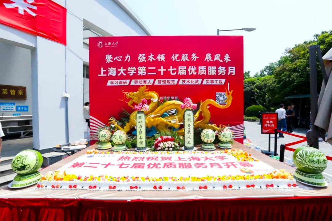 开幕式结束后,优质服务月的大型展示展销活动在水秀楼前火热开启。色香味俱佳的菜肴、品种繁多的商品,以及绿色植物的展示与销售,成功吸引了众多师生的积极参与。