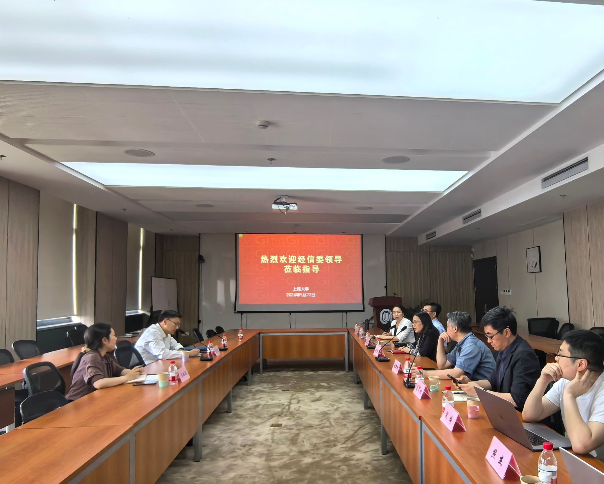 张建华副校长代表学校对汤主任一行来访表示感谢,汇报了学校高度重视AI4S发展,张统一院士倡导的材料基因组、材料信息学和材料基因产教融合方面的进展。后续将进一步围绕上海急需的先导产业,在人工智能材料设计方向进行讨论和聚焦。