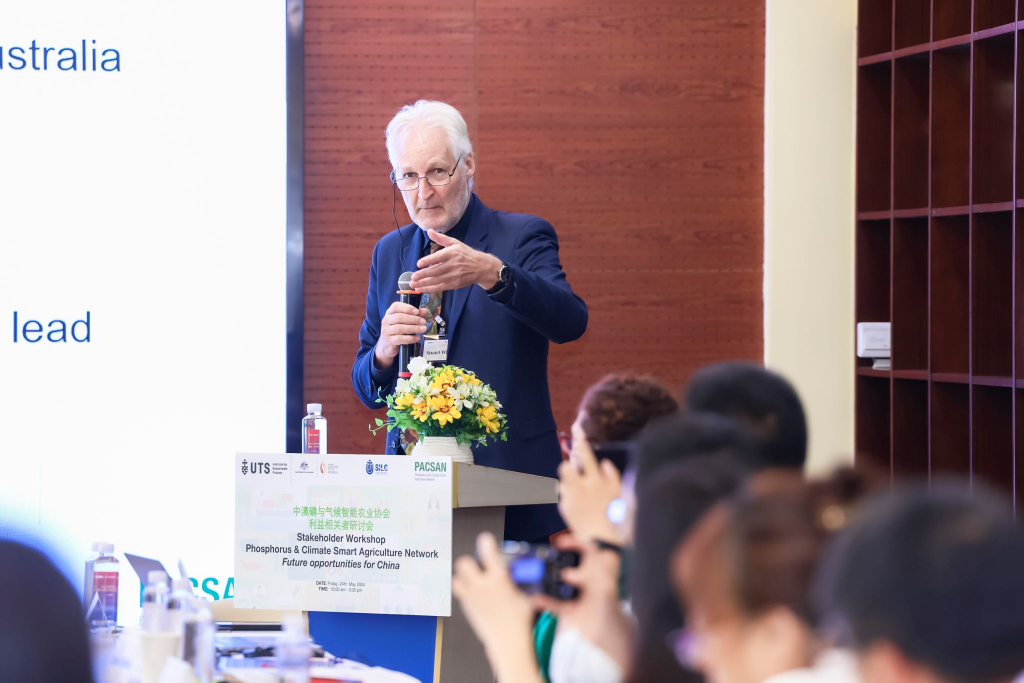 Stuart White教授和Dana Cordell副教授详细介绍了PACSAN项目,该项目由澳大利亚外交贸易部提案的澳中基金会资助,旨在汇集中澳两国的食品系统研究人员和利益相关者,共享知识并制定应对气候变化和磷稀缺对食品供应挑战的策略。Dana Cordell副教授讨论了农业和食品价值链在全球温室气体排放中所占比重之大,以及磷肥使用所面临的有限原材料、高风险和成本上升等问题,强调转型食品系统的必要性及其对食品安全和水质改善的积极影响。