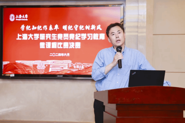 本次比赛以“学纪知纪作表率,明纪守纪树新风”为主题,各学院遴选推荐29门课程参加校级初赛,18门课程脱颖而出进入决赛。决赛中,各参赛研究生党员以党纪学习教育为主题,有的结合党章、党史,用青年研究生的视角解读新修订后的《中国共产党纪律处分条例》;有的讲述正面先锋故事进行激励鼓舞,引用反面典型进行警示警醒;有的结合科研工作、校风学风生动呈现师生党员知纪律己、担当奋进的精神风貌。