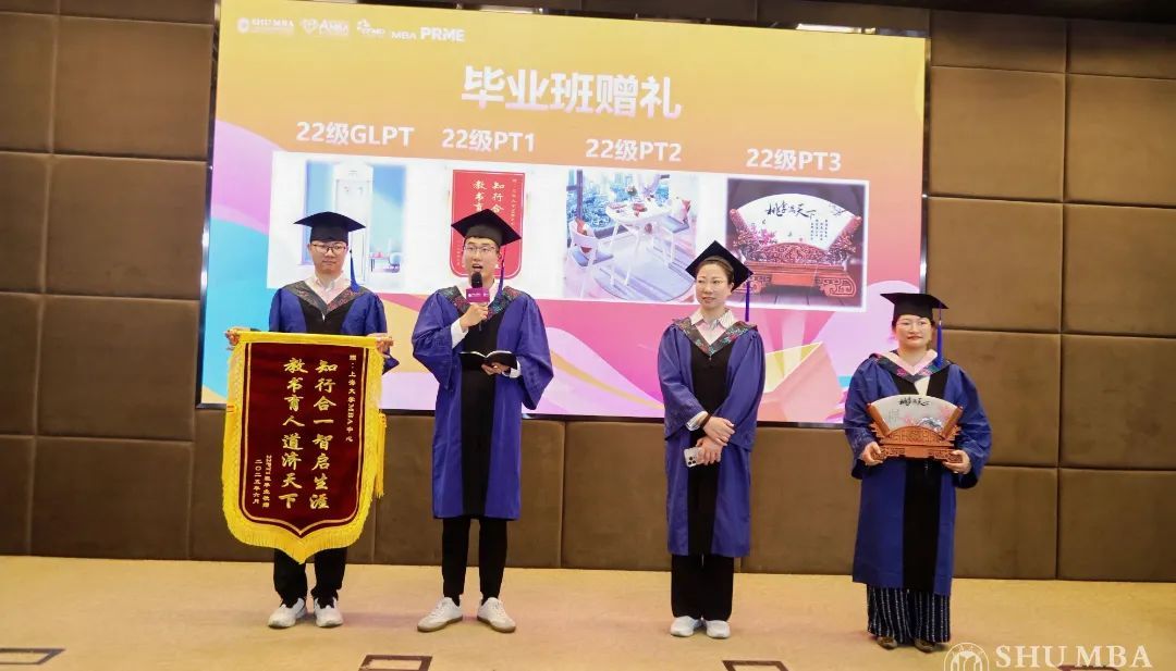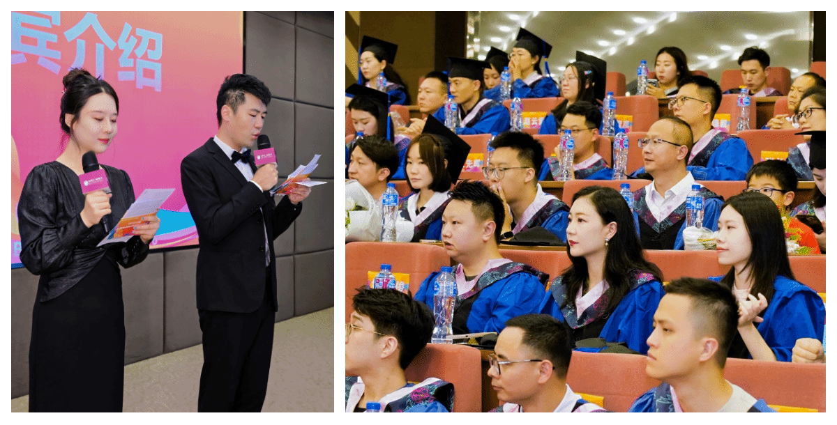 随着毕业视频的播放,一幕幕熟悉的画面,将同学们从重返校园时专业积淀与求知热忱的交融,到课堂内外实战经验与学术理论的思辨碰撞;从案例研讨激荡的思维火花,到实践项目淬就的战略视野;从深夜案头的专注耕耘,到跨文化交流中的自信绽放的历程生动再现。每一帧画面都镌刻着职场精英向复合型管理者的跨越,见证着"知行合一"的成长蜕变。