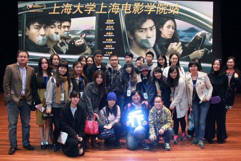 点映式开幕时间是下午两点,但是早在十二点多的时候现场就已经来了大批学生,在一点多的时候伟长楼门口就已经开始排好了队等待点映式的开幕,尽管天气不佳寒风阵阵,同学们仍然热情不减。电影开始后,优质的观影效果,紧凑的电影情节,令大家时而放声大笑,时而沉默不语,时而眉头紧缩。电影放映结束后,主持人隆重的请出了本片导演孙皓和男主演乔振宇,开始了点映见面会。