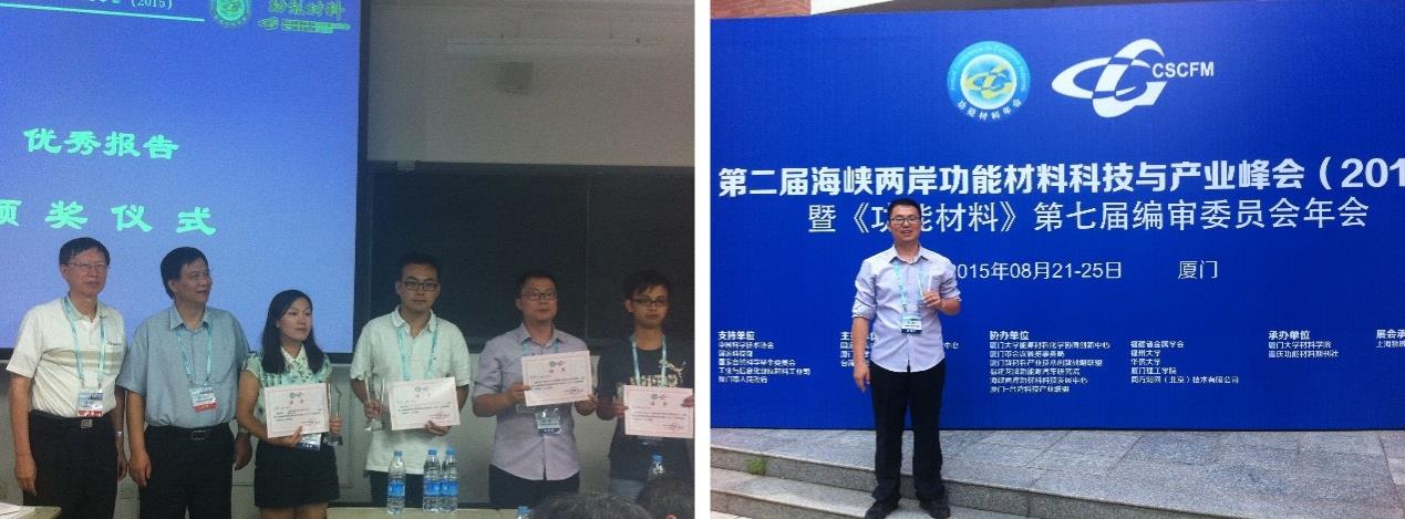 材料学院学子获“第二届海峡两岸功能材料科技与产业峰会(2015)”优秀报告奖