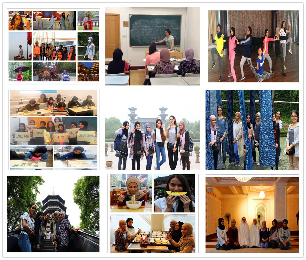 每次集体出行,在路上,大家都主动跟我学汉语,每次一个主题,比如身体器官,饮食,衣着,买东西···然后互相提问,造句。晚上在宿舍,他们常常借用宿舍旁边的教室一起复习白天学过的知识。与此同时,学生们还很注意应用,每次去超市、银行、旅游景点,都自己尝试着用学过的词句进行对话。最有意思的是,一次参观上海市博物馆,那几天学生们学了一些汉字,非常有兴致,每到一块介绍展板前就挪不动脚,一起用手指头指着认字,还比赛谁认识得多,他们的举动让我这个带队老师感到很幸福,而学生们更是成为了其他人的观赏对象,看到这些不常见的中东国家的学生们这么认真地学习汉字,大家都纷纷要跟他们合影留念。
