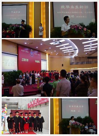 9时整,主持人宣布典礼开始。在雄壮的国歌结束后,全体毕业生聆听了陈晓明教授级高工的致毕业生的话,他在演讲中,用生动工作经历,诠释了谨记“自强不息”的校训、志存高远、从小事做起、不惧挑战、敢于担当、理论联系实际、密切联系群众等工作感悟,给即将踏上社会的毕业生以启迪。随后是激动人心的学位授予仪式,校党委常委、副校长丛玉豪教授给毕业生颁发证书、拨流苏,系主任杨骁教授给毕业生颁发贺信,系副主任张孟喜教授宣布了学位授予名单,土木工程系博士生导师孙德安教授代表全体教师祝贺学生顺利毕业,学位授予仪式由系副主任朱杰江教授主持。