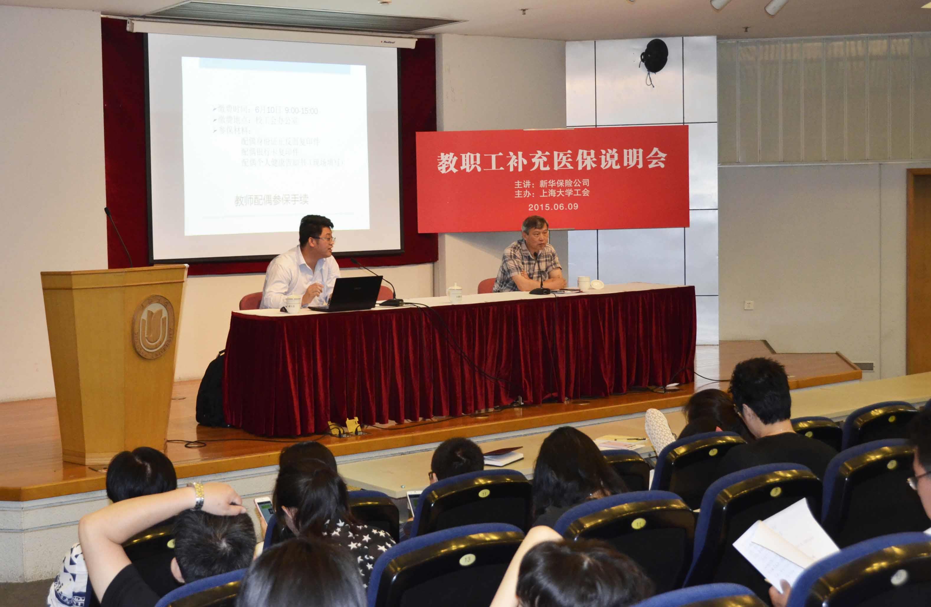 6月9日上午,校工会邀请了新华保险公司有关负责人来校作说明会,就保障方案进行宣讲,以方便全校教职工及时准确知晓这项健康福利的内容。各学院(系统)分工会主席、生活委员、工会小组长以及普通教职工共计100多人参加了说明会。
