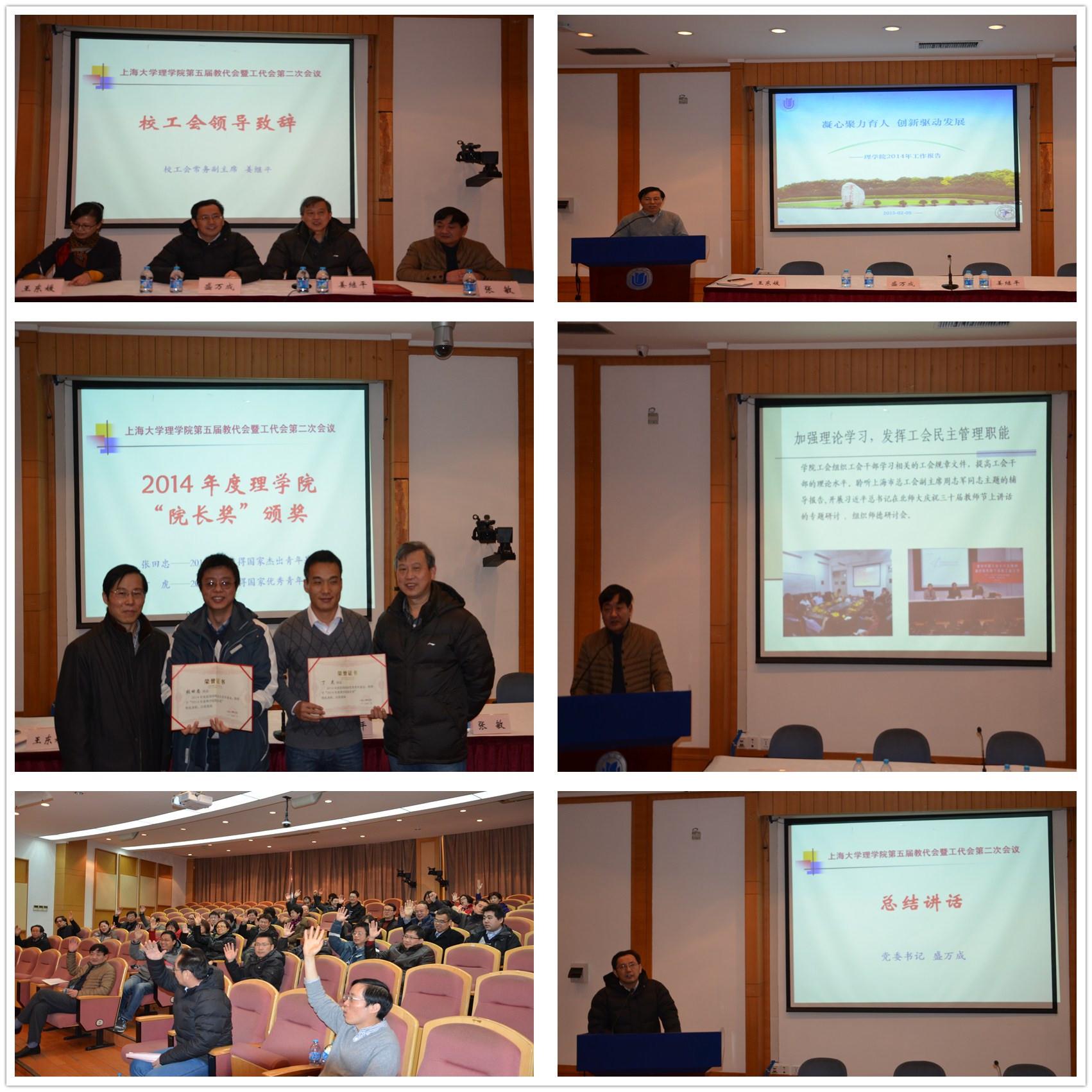 会上,学院工会主席张敏代表院工会做了题为《团结奋进,和谐发展》的理学院五届二次双代会工作报告。代表们认真听取了理学院执行院长翁培奋代表学院所做的《凝心聚力育人,创新驱动发展》的行政工作报告以及财务工作报告,报告从学院2014年全系统管理考核的核心指标、关键指标及日常工作的完成情况、遇到的瓶颈与问题、下一步的努力方向与措施、2014年学院财务使用情况等方面向代表们详细汇报了理学院2014年取得的工作成就、存在的不足、2015年努力目标和2014年财务使用情况。代表们还认真听取了对理学院即将出台的《理学院绩效激励实施办法》讨论稿的详细解读和说明,并对实施办法举手表决通过。会议还为理学院2014年院长奖获得者2014年国家杰青获得者张田忠教授和优青获得者丁虎教授进行了颁奖,并对他们表示热烈的祝贺。