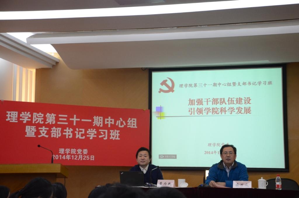 理学院举办第三十一期中心组暨支部书记学习班,校组织部副部长曹为民为学习班作主题报告