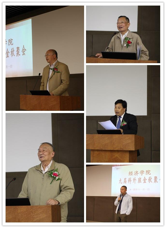 本次聚会主要分为两段 :第一段是致辞与发言。首先由学校党委常委、组织部长徐旭、原上海市科委主任金柱青和经济学院常务副院长聂永有等分别致辞;随后,原国家科委国际合作司司长、中国国际科技合作协会会长吴贻康作了“创办科技外事专业的前前后后”的主题发言。他深情回顾了当年提议创办“科技外事班”的经过,感谢原上海市科委、市高教局的支持与学校十多年来从事科外班复合型教学的可贵实践;之后,董勤老师和凌国平老师分别作了“我们的科外班”和“重温科外班的教学理念”的专题发言,他们回顾了历届科外班的办学经历,总结了科外班的办学经验与亲身感受;最后,九届科外班的班长依次作了“同学们的曾经与现在”的发言。他们满怀深情地叙说了他们在校的曾经与毕业后的现在。他们感谢学校和老师们给他们的人生机遇和悉心的培养与教育。 第二段是九届科外班线上-线下的互动交流。在这个阶段,第一届科外班的班长、校董余勇宣布了九届科外班校友微信大群的建立;随后,科外班投资群、 科外班旅游群和科外班亲子群等主持人(群主)作了精彩的发言;最后,身居海外的同学代表也通过视频/音频向本次聚会表示祝贺。
