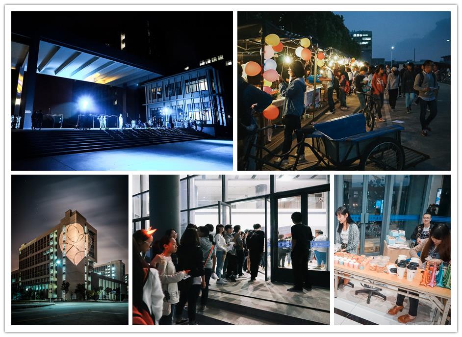 活动当晚,夜市灯火通明,人群熙熙攘攘,主舞台上三个多小时的狂欢更是将活动推向了高潮。这次活动规模空前壮大,在融合了多个学院和社团的同时,场地范围也由通常的内场延伸到了整个东区,把精彩纷呈的校园文化充分呈现在了上大师生的眼前。