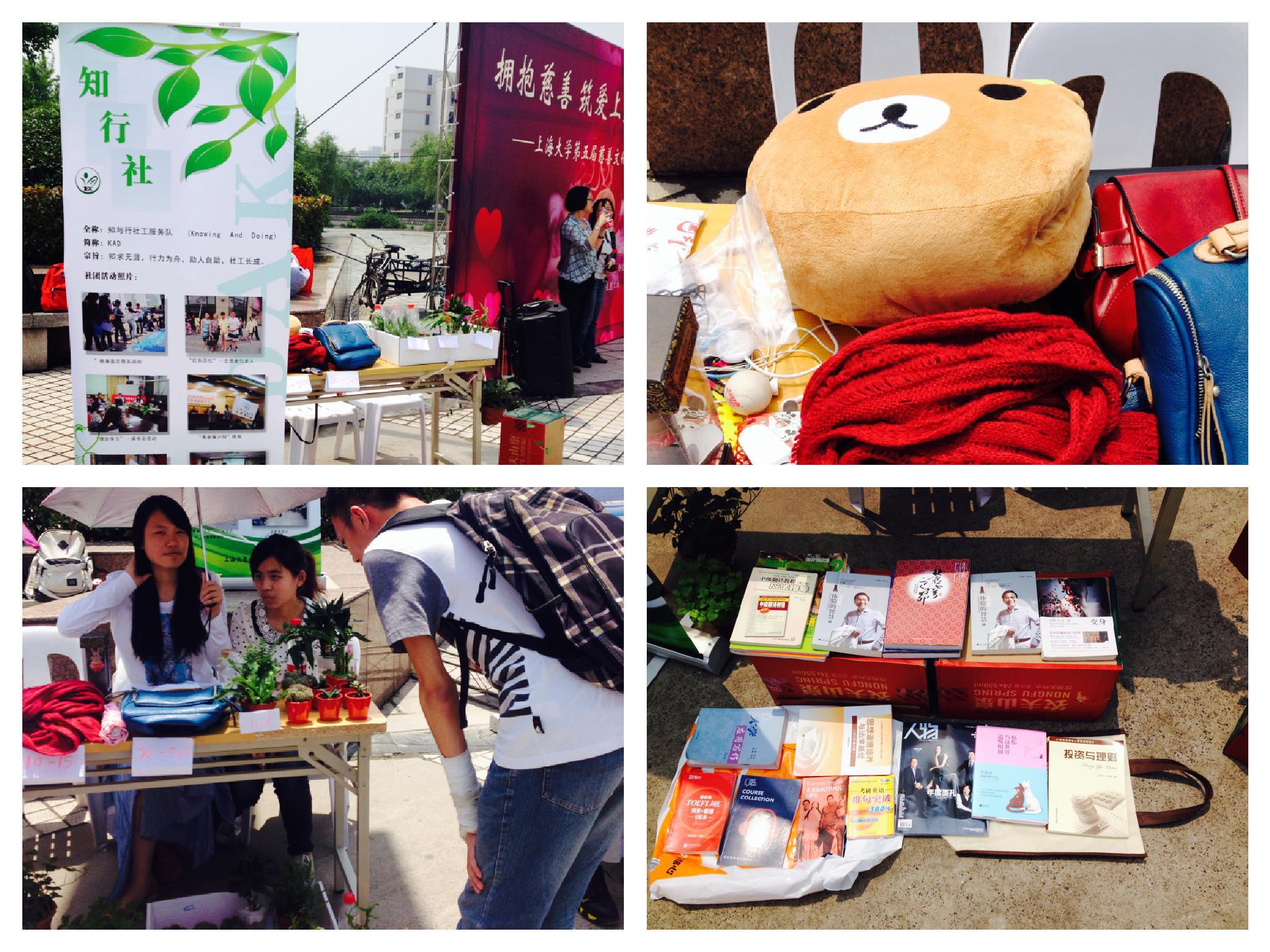在此次爱心义卖中,社会学院11级与12级社会学班和社会工作班同学积极参与其中,在义卖前两周自主捐赠饰品、皮包、文具、书籍等爱心物资;上海静安区青年预防艾滋病服务中心也热心捐赠60个小盆栽,为爱心义卖做好了充分准备。