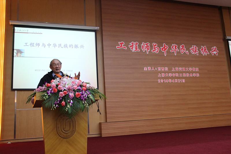 4月21日,应中欧工程技术学院邀请,上海交通大学知名教授刘西拉来我校作“工程师与中华民族的振兴”主题讲座。本次讲座是中欧工程技术学院“工程师能力素养和行为训练”课程内容之一,希望同学们了解工程师肩负的责任和使命,同时学会如何听讲座和如何提问。中欧学院直属党总支书记、院长钱晋武,中欧分管教学副院长陆歆弘,土木工程系直属党总支副书记秦凯丰及教师代表等出席,来自中欧、土木、理学院、钱伟长学院等多个院系的四百多名学生到场聆听讲座。中欧学院直属党总支副书记李志芳担任主持。