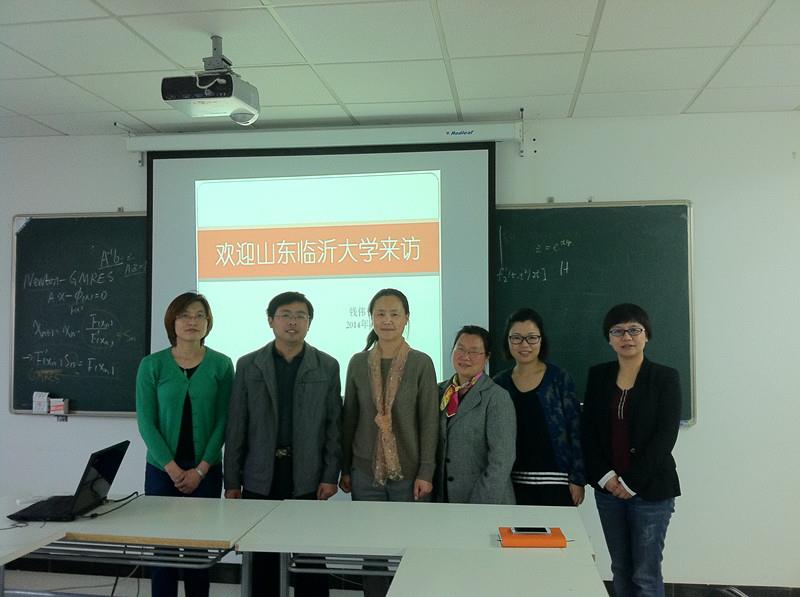 2014年4月15日下午4:30,山东临沂大学高等教育研究院专职研究员薄存旭、栾兆云访问钱伟长学院。学院直属党总支副书记徐晓夏、办公室主任李财仙、总支委员阮杜娟、组织人事干事苏英于D507会议室参加会谈。