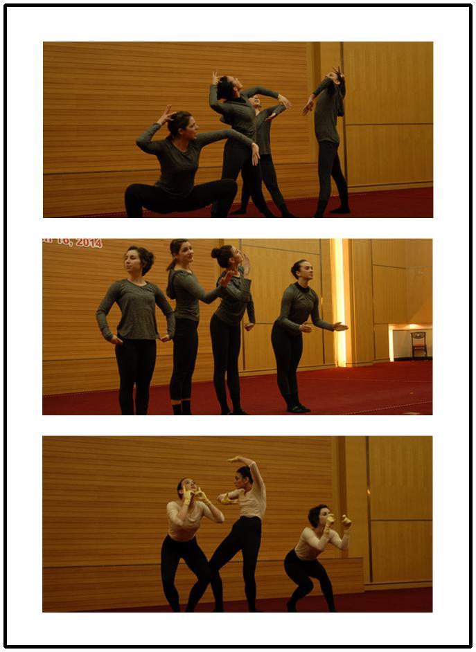 在Susan Petry教授的主持下,教授与四名学生先后表演了8个现代舞节目,舞者们优美的舞姿和独特的编排迎得了台下观众的阵阵掌声。四位舞者用自己的肢体演绎丰富的情感和内涵。开场舞名为《给人生浇点水》,四位舞者通过在舞台中央快速、紧凑的移动,与音乐有机结合,表达了人生中的矛盾与冲突;舞蹈《点》以探讨艺术作为教育和社会宣传手段为出发点,由四名舞者化身人类血液中的白细胞和红细胞,通过特别的舞蹈编排来表达人体中血液的运行机制,并解说了艾滋病病毒防治教育的内容;在最后一支舞蹈《冰川》中,编舞者用大量平铺在舞台上的白色纸片来象征冰川和白雪,而身穿淡蓝色衣服的舞蹈演员仿佛冰雪中的精灵,她们碎片式的、多重焦点式的运动方式展示了十分典型的当代舞运动方式,其风格上的体能化和杂技化令现场观众惊叹,并且唤起全场强烈的情感共鸣。在整台演出中,除了表演自己的原创作品,来自俄亥俄州立大学舞蹈系的师生还为我们重现了美国现代舞不同时期的代表作,如创作于1955年的《房间--白日梦》和1969年的《椅子/枕头》,都可以令现场观众观赏到原汁原味的美国现代舞之中的经典。