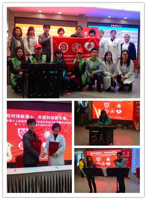 仪式于下午2点正式开始。十院党办主任徐倍向来宾们介绍了莅临的领导和嘉宾,接着十院的沈迎春副书记和音乐学院卿扬老师致辞并对即将合作的项目提出了殷切希望,随后,在大家的见证下完成了签约仪式。仪式后,音院的志愿者们为大家带来了一场小型音乐会,音乐会上本科生李丝雨同学的扬琴独奏和研究生张娜、姚舜祥的小提琴双重奏把整个签约仪式推向高潮,同学们热情高涨的表演引来了众多病患驻足观看,病人和家属们除了对同学们的演出给予了高度肯定外,也对医院的人性关怀表达了由衷的感谢,签约仪式在温馨和谐的气氛下画上了圆满的句号。