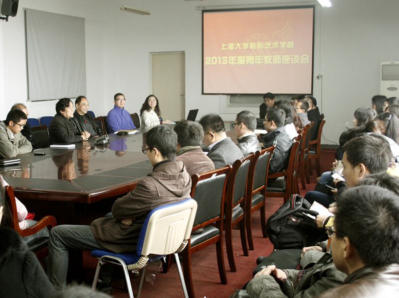 2013年12月6日下午,数码艺术学院在数码A楼417会议室召开2013年度青年教师座谈会。数码艺术学院院长仲星明、党委书记陈大明、副院长张华良和学院40余名青年教师参加了会议。