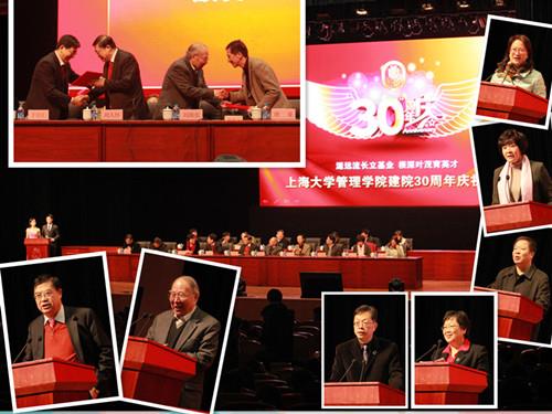 管理学院院长尤建新教授发表庆典致辞,代表学院全体师生,向长期以来关心、帮助、支持学院建设发展的各级领导、各位前辈、各界朋友、各届院友以及同事同仁致以最诚挚的感谢。大会宣读社会各方贺信贺电后,中科院大学管理学院赵红副院长、第一财经电视总监助理、东方财经频道主编金瑜、上海市教委秘书长王志伟分别代表兄弟院校、校友、市教委发表祝贺讲话。管理学院党委书记、校友分会会长樊春妹作《回顾与展望》的主题发言。