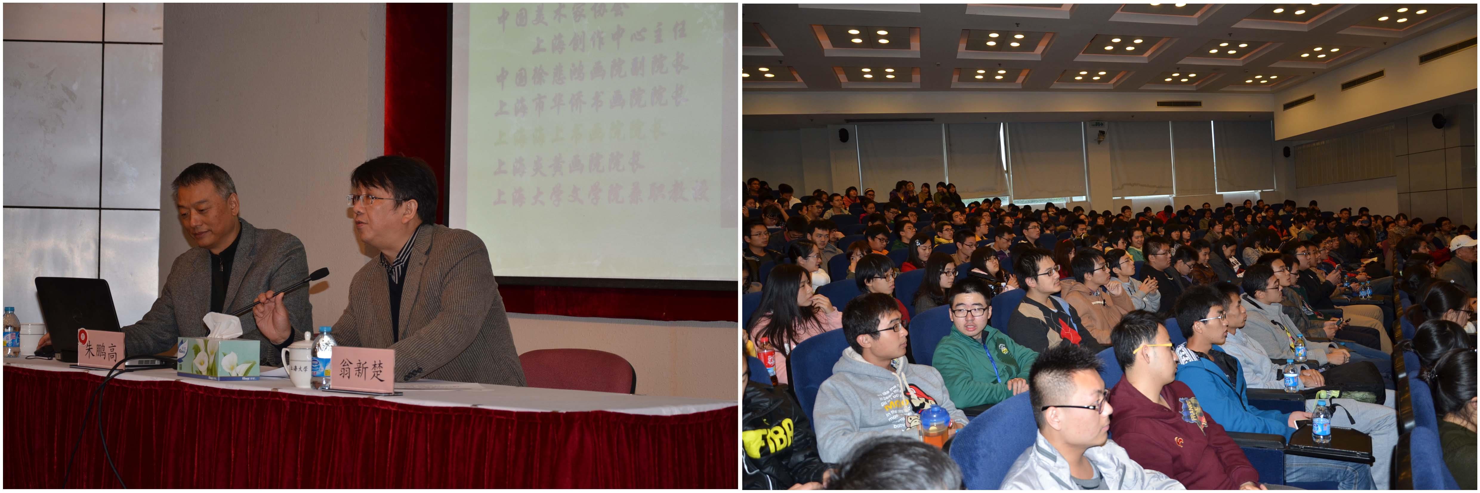 11月24日,东方讲坛暨海归论坛第一讲:《海派中国绘画的形成、发展与鉴赏》在新校区行政楼报告厅举行。此次报告会由校党委统战部、市欧美同学会上大分会、社区学院联合承办。上海海上画院、上海华侨书画院院长朱鹏高主讲。社区学院理工二组近400名同学和部分欧美同学会上大分会的学长参加了报告会。报告会由市欧美同学会上大分会副会长兼秘书长翁新楚主持。