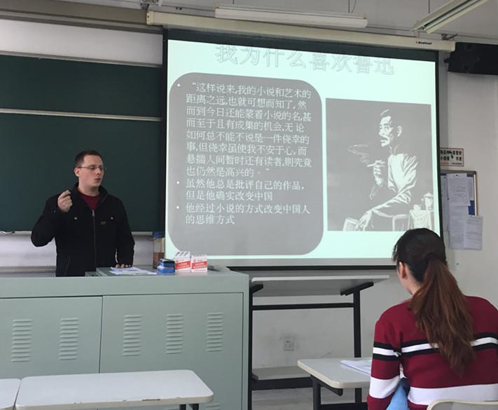 经过一段时间的自学,我很期待把自己的收获介绍给老师和同学。在课堂上作读书报告的时候(如图),我非常大胆地提出了自己对鲁迅作品的看法,甚至是对许多中国学者看法的挑战。我表达了对《药》和《伤逝》的想法,我完全不理解一个人怎么可能读完这个小说后想到,“对啊,革命!他写的就是革命!”我也不能认同一些人关于“涓生和子君的爱情到底是中式还是西式?”的讨论,为什么?难道爱情有国籍吗?爱国的话必须用一定的方式去爱人吗?没有一种超越国家界限的爱情吗?同学们的讨论很热烈,最后我的看法与别人的看法一样或不一样都不能完整地表达出作品的内涵。只有一个人知道鲁迅的小说是什么意思,可惜他1936年就去世了。